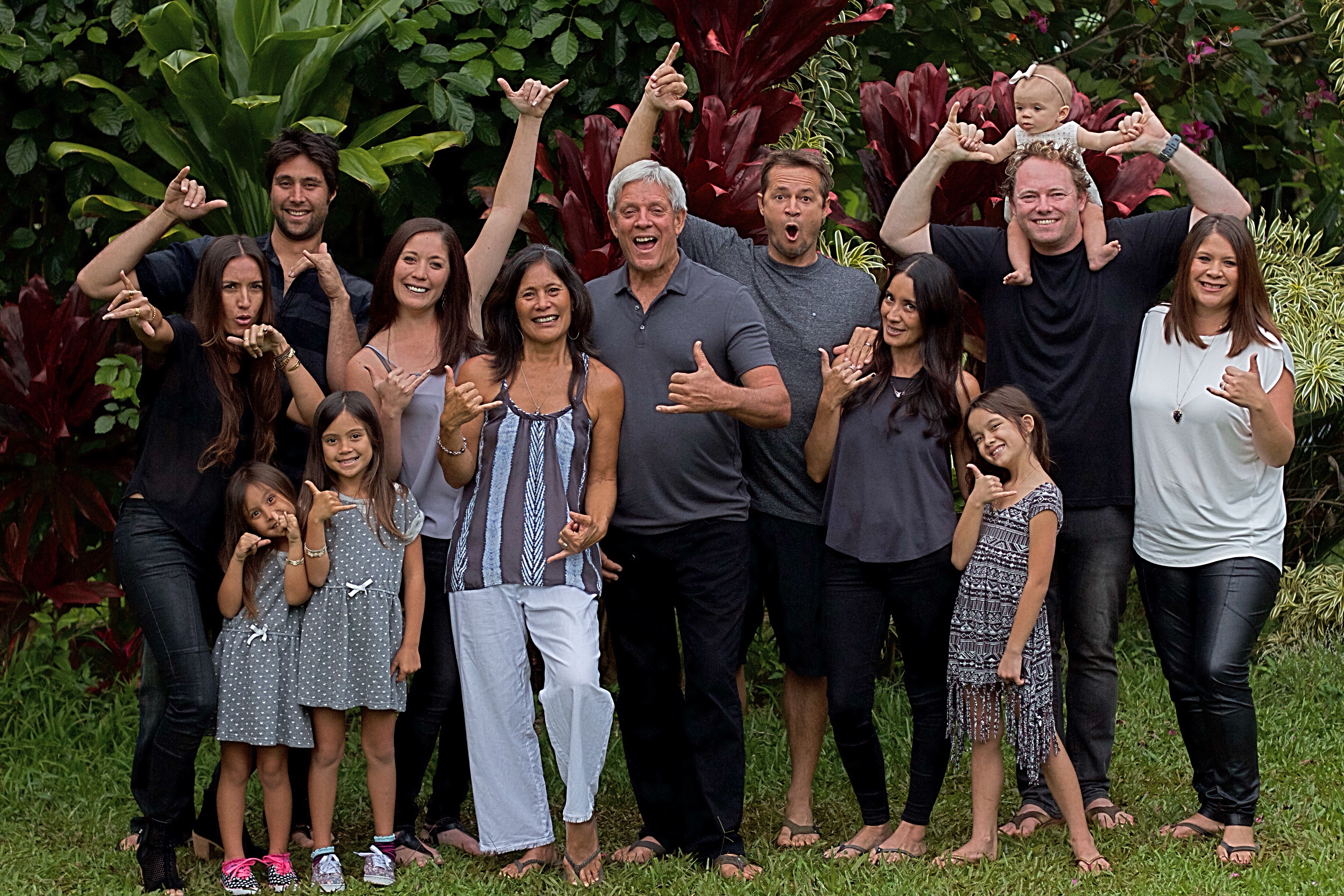 My family means everything to me. My wife and I raised two boys, who are top surfers on Maui. Micah a pro surfer and manager of Dakine international pro surf team and marketing. He is married to a charming girl who runs Olukai shoes in the state and has a cute daughter named Makenna. My other son Nate is a computer programmer, married to a talented girl who owns Keani Jewelry in Makawao and Whalers Village, they have two daughters. I have two lovely daughters, one is married and lives in San Clemente and doing really well. My other daughter Meili lives on Maui, loves horses and works at the Marriott Hotel in Wailea. My lovely wife is born and raised on Maui, my best friend, talented artist, just a great human being.